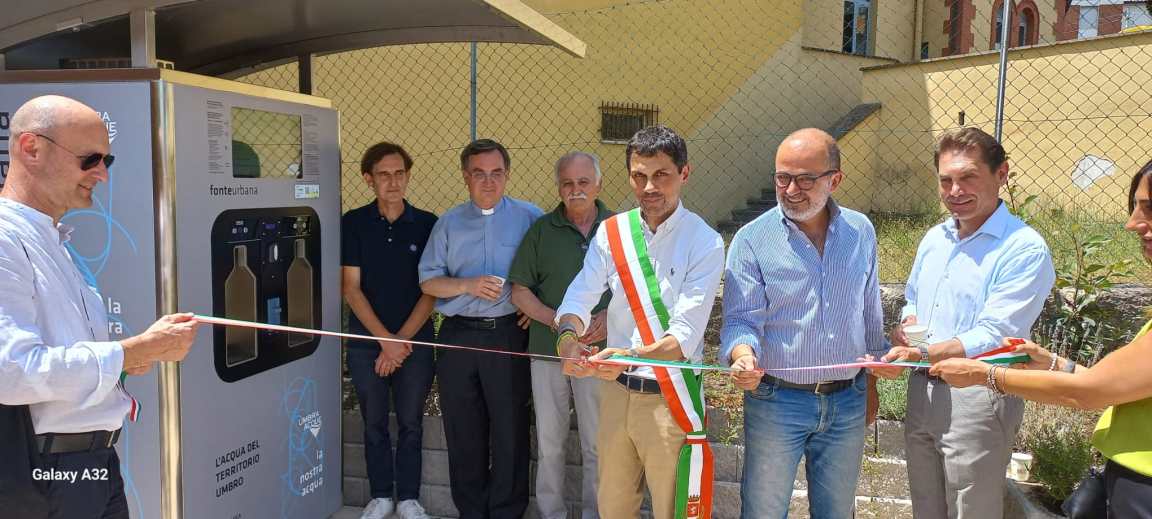 PERUGIA – Una nuova fonte urbana nel territorio perugino. Anche Fontignano, infatti, ha il suo impianto di erogazione di acqua naturale e refrigerata a cura di Umbra Acque e Comune di Perugia. Ad inaugurarlo sono stati il sindaco Andrea Romizi, l’assessore all’ambiente e ai lavori pubblici Otello Numerini, il presidente di Umbra Acque Filippo Calabrese e i tecnici di Umbra Acque, tra cui Andrea Vitali, responsabile della gestione operativa. Presenti anche il parroco, don Paolo Cherubini, il presidente della proloco Claudio Fortunelli, il presidente dell’Asd Fontignano Marco Cherubini e residenti.