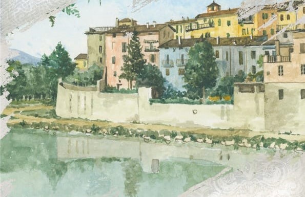 Il manifesto vede la riproduzione di uno dei capolavori ad acquarello di Bottaccioli, una magnifica veduta dal ponte del Tevere con una parte della parte vecchia della città che si specchia sul fiume.
