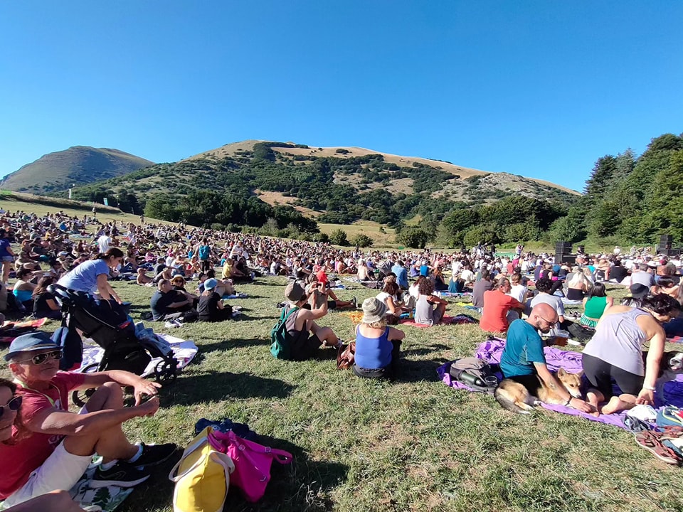 GUALDO TADINO (Perugia) – Un concerto che rimarrà nei cuori degli spettatori , ma anche i numerosi turisti, accorsi da tutta l’Umbria sabato 12 agosto, chi a piedi con escursione lungo i sentieri naturalistici, chi con la navetta, sul pianoro di Valsorda a Gualdo Tadino per ascoltare e condividere più di un’ora e mezzo di musica con Carmen Consoli accompagnata in duo da Massimo Roccaforte, in quota nell’ambito del festival itinerante Suoni Controvento (promosso da Aucma con il sostegno del Ministero della Cultura, Regione Umbria, Sviluppumbria, Fondazione Perugia e Fondazione Cassa di risparmio di Terni e Narni).