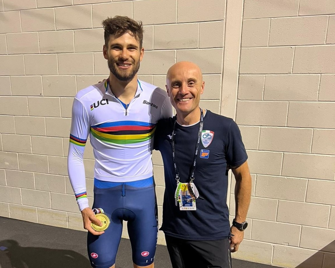 CITTÀ DI CASTELLO (Perugia) – Anche l’Umbria si merita di diritto un pezzo di iride della nuova maglia da campione del mondo di Filippo Ganna. Federico “Fred” Morini, osteopata di fiducia dello staff dei terapisti della nazionale da ormai quasi cinque anni e Città di Castello con i suoi gran premi “Sogepu” a cronometro che lo hanno visto primeggiare a suon di medie pazzesche dal 2016 al 2018.