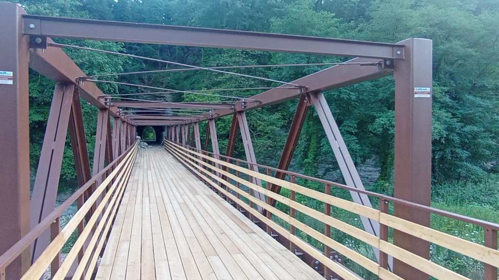 I viaggiatori potranno transitare sopra sette passerelle in ferro per l’attraversamento del fiume Assino, poste nei punti dove sorgevano i vecchi ponti della ferrovia bombardati dai tedeschi. Senza dimenticare i particolari passaggi all’interno di quelle che furono le gallerie della ferrovia, comunemente denominate “foretti”.