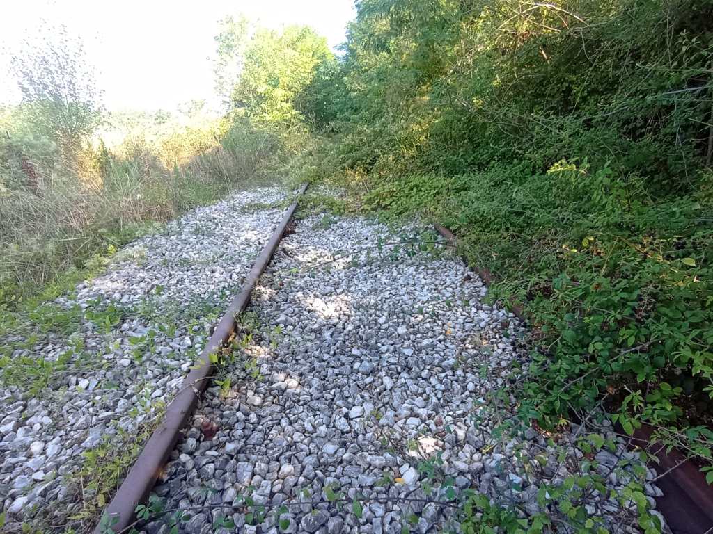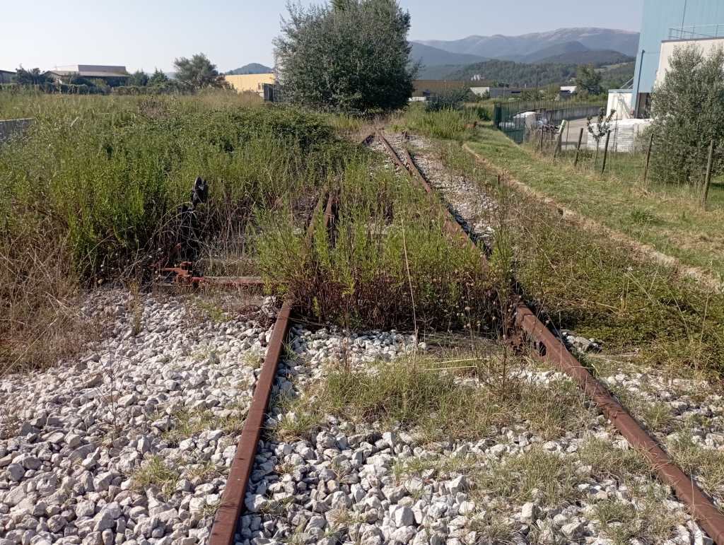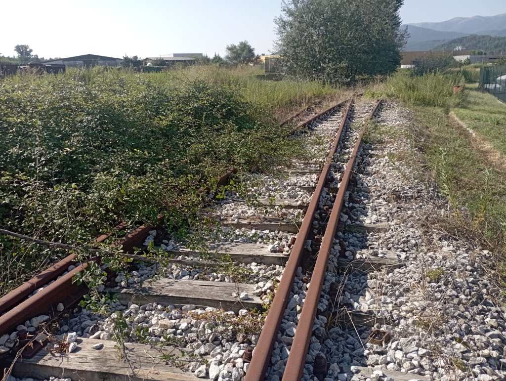 Ferma con le quattro frecce da ormai sette anni, la massicciata del tronchetto ferroviario è ormai divorata da ogni sorta di erbacce, sterpaglie e rovi. L’unico punto pulito è esclusivamente quello che passa davanti a una casa privata, dove per bontà dei proprietari dell’abitazione viene fatto un taglio sistematico dell’erba al fine di evitare l’arrivo di animali pericolosi e di dare un minimo di decoro al cammino ferrato che non ha mai visto transitare un convoglio.