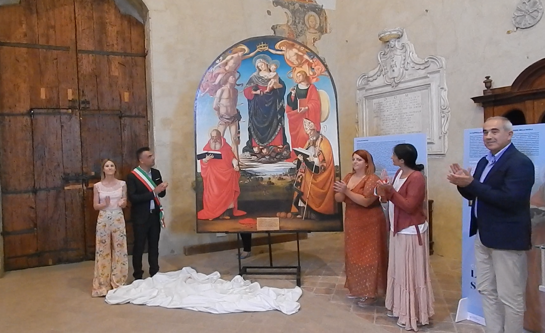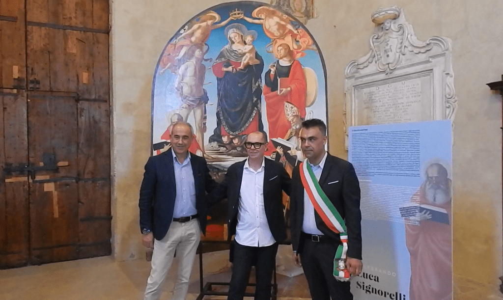 La copia della pala signorelliana, nella quale sono raffigurati la Vergine con il Bambino e i santi Sebastiano, Nicola di Bari, Cristina e Girolamo,  è stata esposta nella mattinata del 5 agosto davanti a un numeroso pubblico presso il museo di San Francesco, antica chiesa per la quale era stata dipinta.