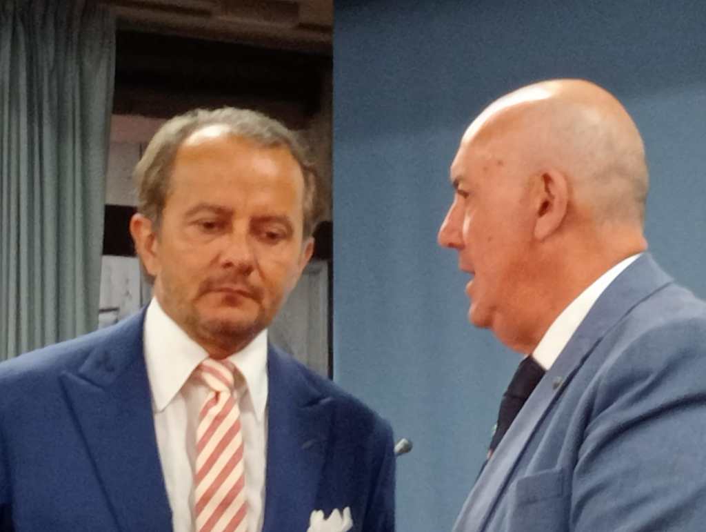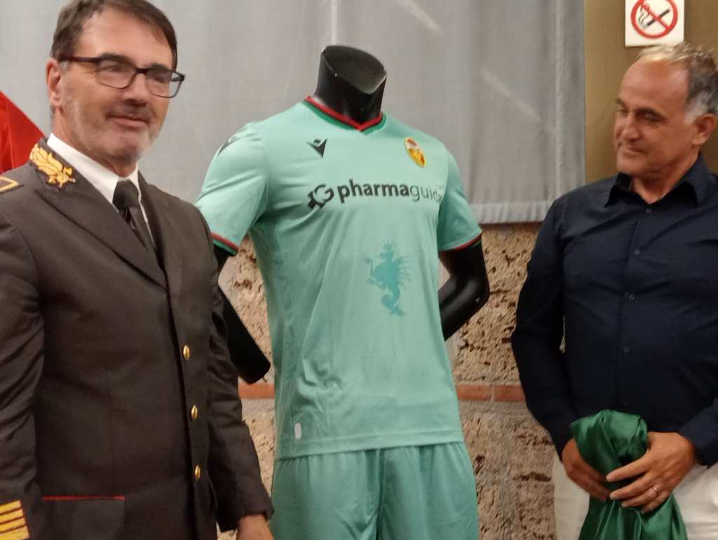 TERNI- Le nuove maglie della Ternana 2023-2024 per il campionato di serie B sono state presentate questa mattina all’hotel Garden alla presenza del neo presidente Nicola Guida, del direttore sportivo Stefano Capozucca, delle istituzioni territoriali – il prefetto Giovanni Bruno, il questore Bruno Failla, il comandante provinciale dell’Arma Davide Milano e il numero uno provinciale dei vigili del fuoco Paolo Nicolucci – e dell’assessore allo sport Marco Schenardi. Il responsabile commerciale Macron Gianluca Serpetta ha presentato le nuove maglie. La terza maglia sarà presentata prima dell’inizio del campionato, oggi la nuova divisa del portiere rossoverde.