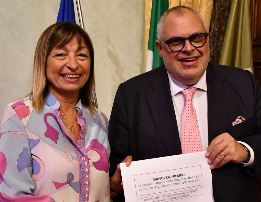 PERUGIA – È stata presentata Remix, manovra completamente rivolta alle imprese per supportare i loro progetti di ricerca, export, investimenti produttivi. La presidente della Regione, Donatella Tesei, e l’assessore allo Sviluppo Economico Michele Fioroni hanno illustrato una manovra composta da ben 8 bandi differenti, che usciranno nei prossimi mesi, ma di cui la Giunta regionale ha già approvato i criteri e definito un cronoprogramma preciso, per garantire alle imprese quella certezza indispensabile a pianificare al meglio le proprie strategie di impresa.