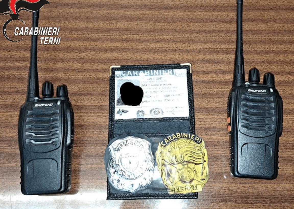 TERNI – Nella mattinata di venerdì 11 agosto è arrivata al 112 una richiesta di intervento relativamente alla presenza di due uomini, che arrecavano disturbo agli avventori di un noto bar di questo centro. All’arrivo dei Carabinieri della Sezione Radiomobile del NOR della Compagnia di Terni presso l’esercizio commerciale i due hanno tentato la fuga a bordo di un’utilitaria ma sono stati subito bloccati da militari dell’Arma nella periferia della città. È stata proprio la profonda conoscenza del territorio da parte della pattuglia intervenuta a consentire agli operanti di rintracciare i due soggetti. Gli uomini, di origini campane, sono risultati avere precedenti di polizia e, non fornendo alcuna plausibile giustificazione circa la loro presenza in città, sono stati sottoposti a perquisizione personale e veicolare. All’esito della perquisizione uno dei due è stato trovato in possesso di un tesserino completo di distintivo falsificato dell’Arma dei Carabinieri ed entrambi dotati di una radio ricetrasmittente portatile. Dopo gli accertamenti di rito gli stessi sono stati deferiti in stato di libertà per il possesso di segni distintivi di forze di polizia contraffatti. Non escludendo che la loro presenza in zona era riconducibile alla commissione di truffe nei confronti di anziani o di altri reati di tale genere a carico dei fermati è stata proposta l’irrogazione del foglio di via obbligatorio dal Comune di Terni.