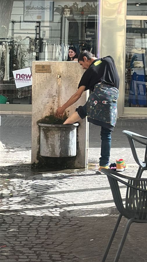 «Vengono a farlo di pomeriggio – denunciano i commercianti del centro città – a volte si lavano proprio tutti». Successe anche in via Giannelli, alla fine di via Cavour, che un signore si fece doccia e shampoo. Chissà che prevede, in questi casi, il Codice Bandecchi.
