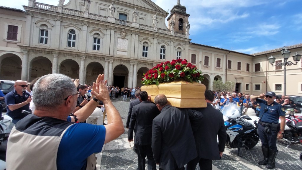 TERNI – «Mirko ci vuole tutti con lui oggi». L’invito è partito da Francesco Pileri, del Team del suo esordio nel Gran Premio d’Italia: era il 1996 quando Mirko Giansanti salì sul podio nella classe 125. Mirko Giansanti è stato protagonista per dieci anni nel motomondiale, gareggiando nelle classi 125 e 250 tra il 1996 e 2005 con Honda e Yamaha. Dodici i podi conquistati e un sesto posto (1998, classe 125) come miglior risultato nella classifica finale di stagione. Poi l’avventura nel supersport e il ruolo di direttore tecnico nel Grt Yamaha World Superbike Team. Il campione di motociclismo scomparso all’età di 46, è stato salutato in modo commovente da amici, familiari, sportivi, fan. In centinaia, in carovana, da via del Cassero all’hospice e poi da viale Trento a piazza Duomo per il rito funebre. Un corteo di moto e di abbracci. Tantissime le testimonianze di vicinanza e cordoglio arrivate alla famiglia di Mirko. «Toccante la compostezza dei genitori Doretta e Fosco – commenta Pileri – della moglie Oleksandra».