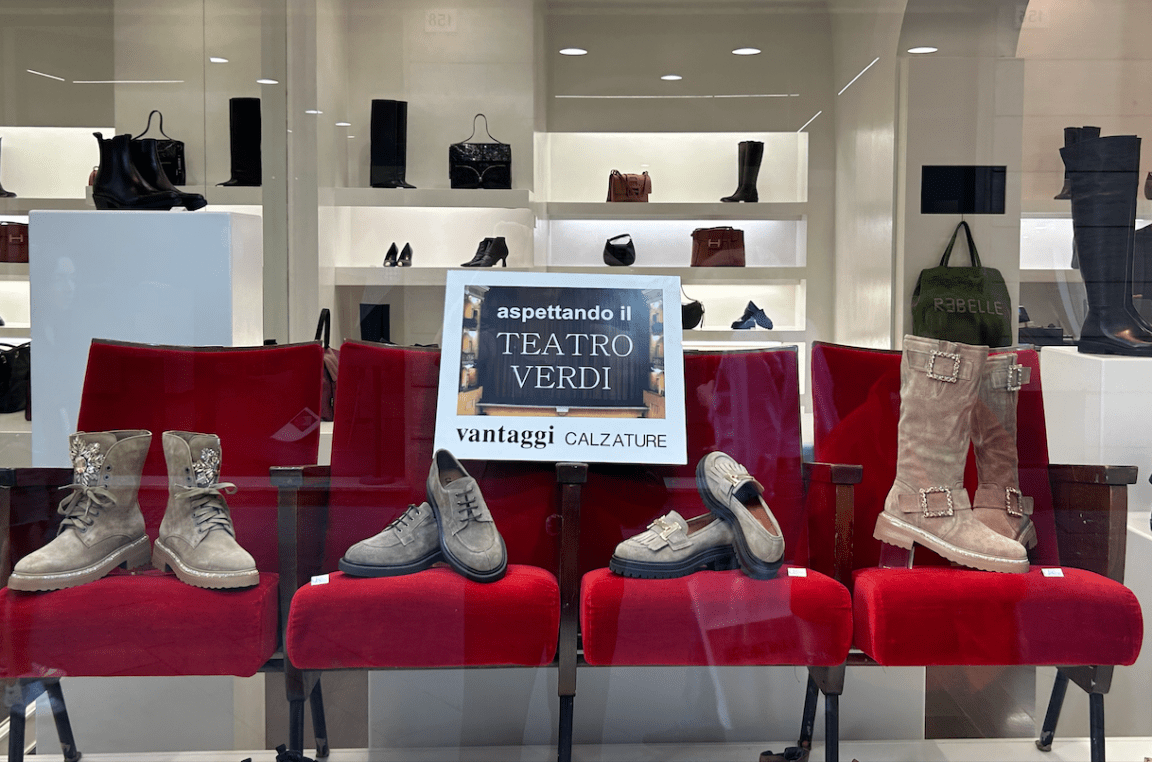 TERNI – La speranza è che non finisca come i personaggi della commedia di Samuel Beckett che aspettavano eternamente Godot. La speranza è che si tratti di cartelli di buon auspicio. A corso Vecchio spunta il cartello nelle vetrina di un negozio storico di calzature, che recita “Aspettando il teatro Verdi”. Un messaggio, peraltro posizionato sopra le vecchie poltrone del Verdi, anche queste esposte in vetrina. Un messaggio di ottimismo e di fiducia verso la restituzione di un’opera che significa molto per Terni e ancor di più per tutta l’area del centro che è a stretto contatto con il perimetro e la facciata dello spazio museale per antonomasia. Il Verdi.