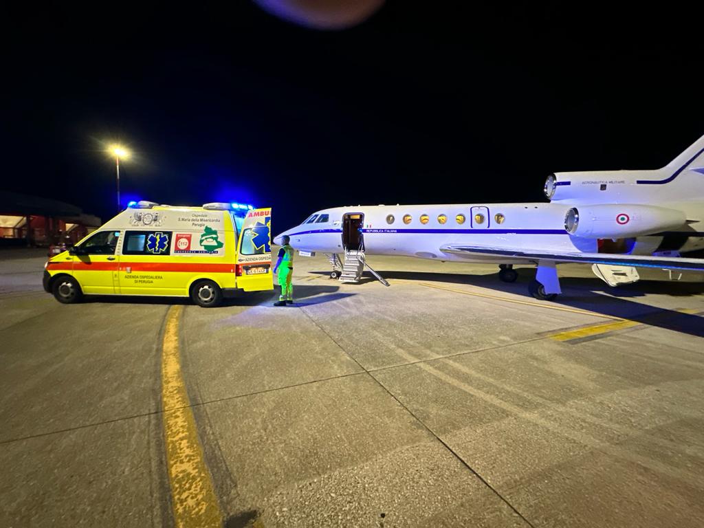 SAN GIUSTINO (Perugia) – A Bari per essere sottoposto a cure particolari. È decollato alle 23 del 15 settembre dall’aeroporto “San Francesco d’Assisi” di Perugia il volo dell’aeronautica militare per il trasferimento di un paziente di 66 anni di San Giustino gravemente ustionato, dall’ospedale Santa Maria della Misericordia al Centro grandi ustionati del policlinico del capoluogo pugliese.