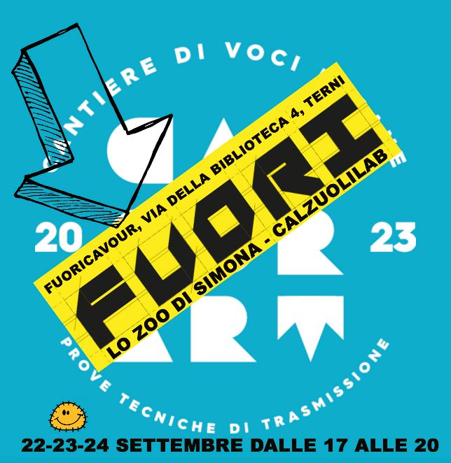 Così, per supportare al meglio questo numero zero.tredici (cioè dopo tredici anni una prova nuova di trasmissione, un numero zero), Lo Zoo di Simona, facendo il verso alle manifestazioni milanesi, presenta il FuoriCavour. Simona Angeletti- dichiara- «rientrati dopo mesi trascorsi lontano dalla città, diamo tutto il sostegno all’Associazione Cavour Art, come sempre per stimolare a guardare e sentire il bello che c’è. In Via della Biblioteca 4, nella Torre del 1200 riaperta quest’anno dopo 100 anni grazie al supporto della Famiglia Cobbe che ha messo a disposizione i locali in comodato d’uso gratuito, Lo Zoo di Simona & CalzuoliLab danno vita ad una mostra di arte a porter dal 22 al 24 settembre. È l’arte a disposizione di tutti: tra sculture in cartapesta (realizzate con la tecnica originale del 1500), Ciccieroi quotidiani, borse, quadri, quadrotti, quadretti in capsule esclusive create per l’evento e anche una primissima edizione di adesivi usciti in questi giorni. Ci siamo anche con l’idea di creare un piccolo polo di aggregazione culturale al centro di Terni».