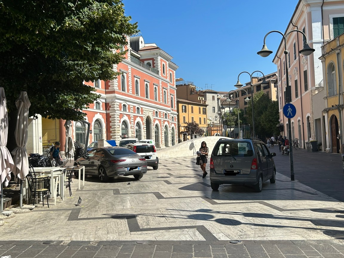 Quello spazio pubblico che porta la firma di Carlo Aymonino diventa parcheggio a cielo aperto come lo è piazza Duomo e piazza Clai. In corso Vecchio si passa con difficoltà. I negozi sono tornati a fare l’orario invernale e quindi molti, di lunedì mattina, sono chiusi. Ma tirare su le saracinesche, alle 16, è complicato. Chi ha lasciato l’auto di fronte alle vetrine chiuse ha pure dimenticato di spostarla. Sui cruscotti delle auto in sosta tra via Fratini e via Cavour compaiono le prime multe. Ma già in via primo Maggio, via Barberini e via Nobili, le macchine occupano le strisce pedonali e le fermate dell’autobus. Ma Palazzo Spada pensa lo stesso a come aprire, presto, la Ztl.
