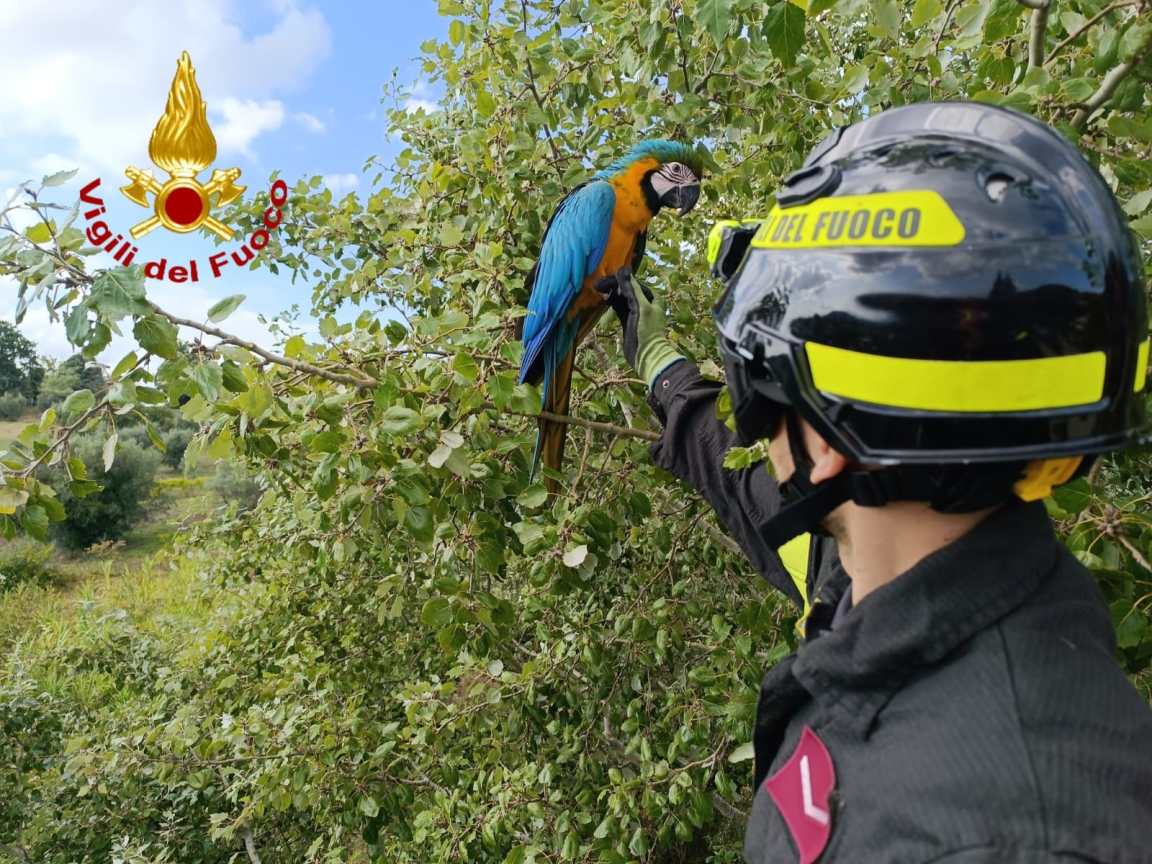 AMELIA – Una storia bella che vede protagonista i vigili del fuoco e un pappagallo. L’animale era scappato da un’abitazione finendo sopra un albero. Ferito rischiava forse di morire