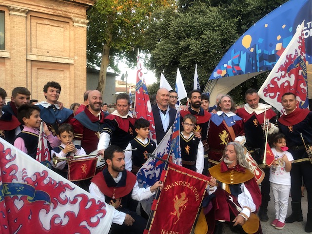 Sapore di altri tempi quando il parco era aperto alle feste di partito prima di chiudere a questo tipo di eventi. Tra gli stand c’è un po’ di tutto. Tanta gente e inaugurazione in grande stile con i petardi colorati giallo-blu, i colori simbolo di AP. A dare il via alla festa è stata la banda di Terni, ovvero la banda Tullio Langeli di Cesi ora accreditata ufficialmente come Banda della città di Terni. Con loro anche i trampolieri e poi lo spettacolo degli sbandieratori di Narni. Prima dei discorsi di apertura anche uno scoppiettante gioco di petardi gallo-blu. Quindi ha preso la parola il vicesindaco Riccardo Corridore che ha coinvolto i due coordinatori di AP, regionale e provinciale, Parca e Filippetti per poi dare la parola al sindaco Bandecchi: «Scordatevi che questa è la festa di AP – ha detto – io mi sono fatto le feste dell’Unità, poi quelle dell’Avanti e quelle dell’Amicizia, questa è una festa per tutta la città di Terni». «Ci saranno tanti eventi fino a domenica sera con la chiusura del concerto di Vecchioni – ha detto l’organizzatrice della festa Barbara Testa- tutto libero, c’è anche un bel giardino degli Innamorati sulla collinetta che sarà il simbolo di questa città, Terni, città di San Valentino».