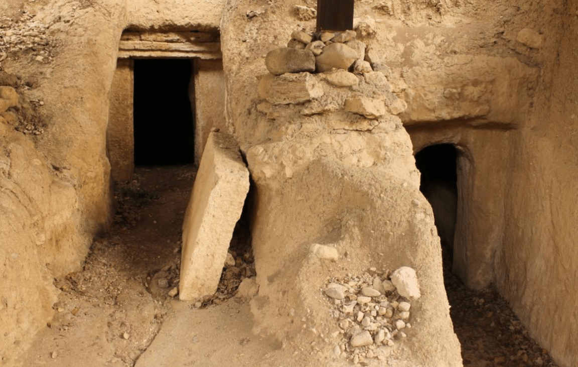 All’interno dell’olla era ancora presente una sostanza alimentare che potrebbe essere ricondotta al cosiddetto pelanos, una focacci, o meglio una farinat, di spelta, un antico grano di tradizione mesopotamica, offerto agli dei inferi per accogliere il defunto nell’oltretomba e che trova in Grecia a Delfi un suo utilizzo nel noto santuario oracolare.  Tra i molti contenitori in ceramica comune apparsi durante le attività di scavo, uno di essi ha un’ansa dove compare una digitazione che richiama affinità stilistiche coerenti con il periodo che va dalla fine dell’età orientalizzante al primo arcaismo.