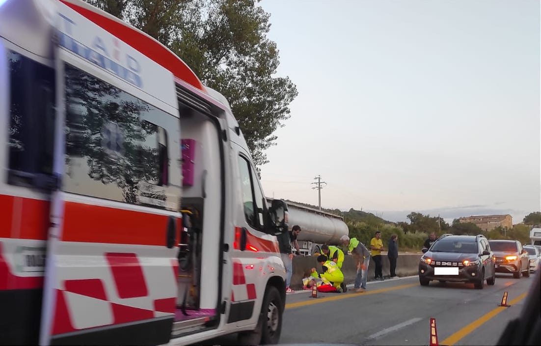 In un tratto di strada a doppio senso di marcia, infatti, intorno alle 19, lunghe code proprio all’orario del rientro domenicale sono segnalate lungo la strada. Sul posto l’ambulanza per soccorrere l’uomo, notato a terra sotto lo spartitraffico dai tanti automobilisti rimasti imbottigliati nel traffico.