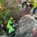 Cade con la bici in un dirupo e resta a lungo a testa in giù
