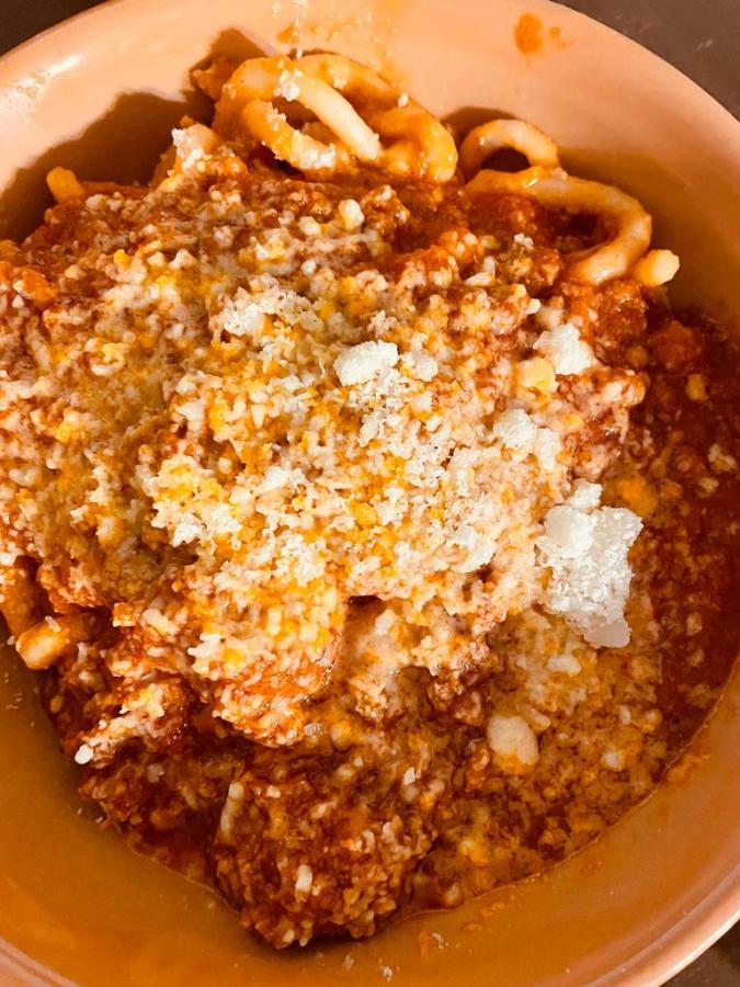 Per il sugo invece tritare la carota, il sedano e la cipolla. Cuocere in padella con olio Evo. Aggiungere la carne macinata e cuocere a fuoco moderato per 15 minuti circa. A parte soffriggere con olio, sale e pepe i funghi tagliati e versarli nel soffritto. Unire i pomodori tritati e proseguire la cottura per altri 30 minuti. A cottura ultimata il sugo deve essere denso. Cuocere i Picchiarelli in acqua salata e condirli con il sugo preparato.