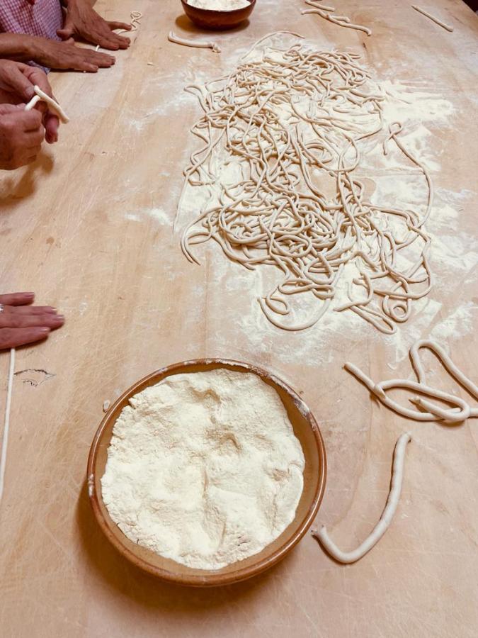 Impastare proprio questi due ingredienti con un po’ di sale fino a quando l’impasto non è. Liscio e compatto. Lavorare un pezzetto di pasta alla volta picchiettandolo con le mani fino a parlo diventare uno spaghetto lungo. Spessore di circa 4 millimetri.