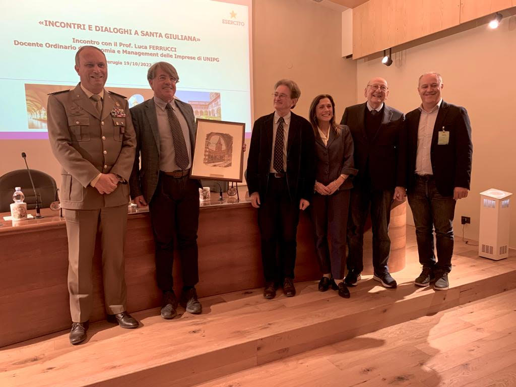 Cosi Luca Ferrucci, professore ordinario della facoltà di Economia dell’Università degli studi di Perugia, ha rapito la scena dell’auditorium della Scuola di lingue estere dell’Esercito di Perugia. Una ripresa di “Incontri e dialoghi a Santa Giuliana” quanto mai di attualità, anche se il Covid sembra alle spalle.