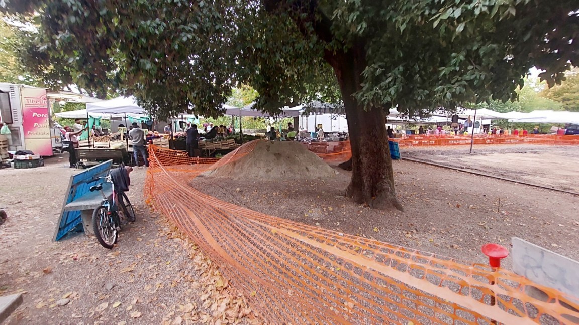 TERNI – Partono i lavori nel piazzale interno alla Passeggiata ed è subito caos. Quattro ambulanti, la mattina di mercoledì 18 ottobre, si ritrovano con i posteggi a loro assegnati, sottratti dalle ruspe. E di mercoledì gli ambulanti non vanno alla Passeggiata per farsi un giro, ma per partecipare al mercato di Terni. Per lavoro, insomma. Solo che anche le ruspe si trovano lì per un impegno di lavoro, perché è stato aperto il cantiere più impattante per il parco, quello che darà nuova vita al piazzale antistante l’ex chiesa del Carmine e all’edificio stesso.