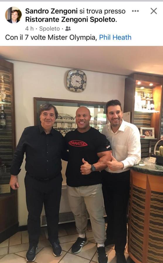 SPOLETO (Perugia) – Phil “The Gift” Heath, sette volte consecutive vincitore del titolo Mr Olympia, ha regalato una visita a Spoleto, con una cena di sabato sera nel ristorante di Sandro Zengoni.