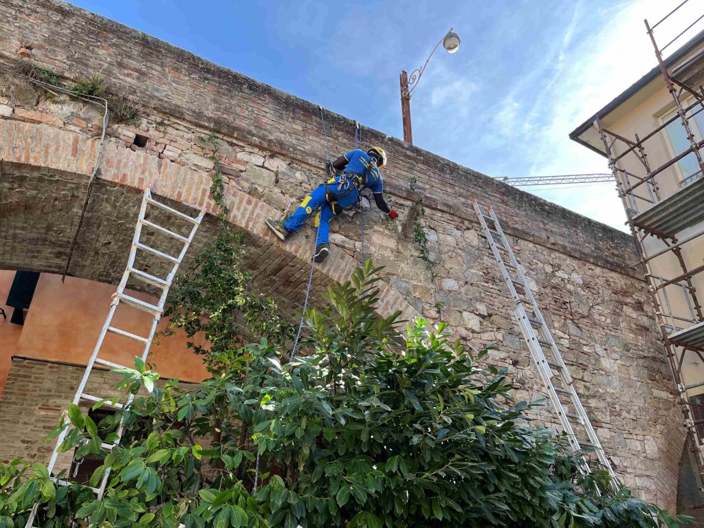 PERUGIA – Via le erbacce dall’Acquedotto prima di iniziare la riqualificazione dell’opera. Nella mattinata del 4 ottobre è iniziata una nuova fase dei lavori per il restauro e la valorizzazione di uno dei simboli di Perugia. Gli interventi sono finanziati tramite il progetto Art Bonus grazie alla generosa donazione di 500mila euro da parte della Brunello Cucinelli Spa.
