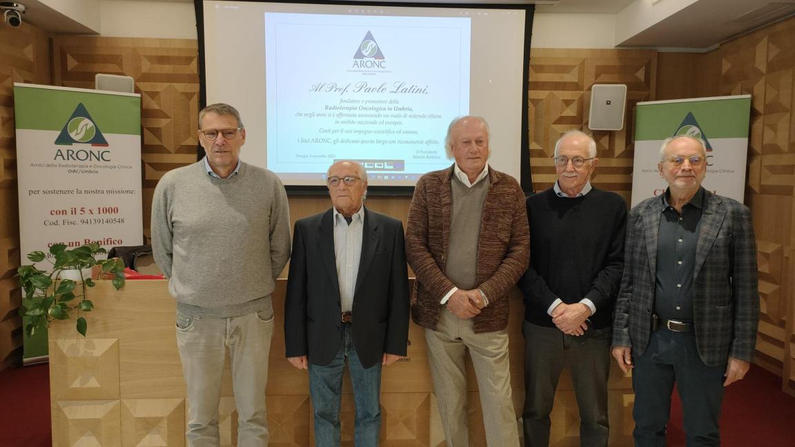 Il professore Latini è stato salutato da colleghi e volontari dell’Aronc che ne hanno riconosciuto le grandi qualità scientifiche e umane. Tra questi Franco Checcaglini ed Ernesto Maranzano, suoi allievi, che hanno conseguito prestigiosi risultati presso le strutture ospedaliere dove sono stati direttori di struttura negli ospedali di Città d Castell e Terni. A portare il saluto delle istituzioni e a tratteggiare le qualità dello scienziato, è stato il vicesindaco di Perugia, Gianluca Tuteri. L’iniziativa è stata fortemente sollecitata dal direttivo di Aronc, presieduto da Manlio Bartolini: «Siamo orgogliosi di consegnare un riconoscimento della nostra associazione a un autentico pioniere della radioterapia in campo nazionale e internazionale. Latini è stato un ricercatore attento che ha dato lustro alla nostra città. Gli siamo riconoscenti a nome della collettività, fiduciosi di averlo ancora al nostro fianco».
