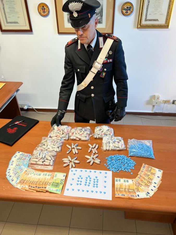 PERUGIA – Tre chili di eroina e cocaina più 1000 pasticche di un nuovo «micidiale» tipo di ecstasy, da poco arrivato in Italia, il Blue punisher. È la droga sequestrata dai carabinieri del Nucleo investigativo del Reparto operativo di Perugia a due uomini, un cittadino francese 59enne ed uno nigeriano 35enne residente a Perugia.
