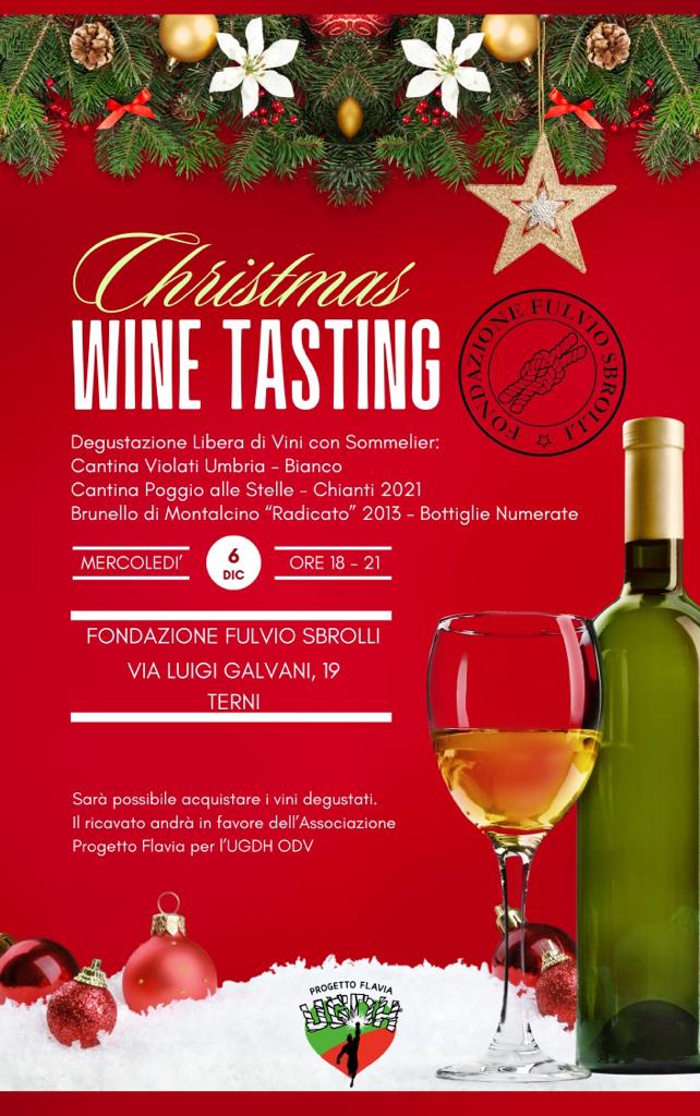 TERNI- Mercoledi 6 dicembre dalle ore 18 alle ore 21presso la Fondazione Fulvio Sbrolli in via Luigi Galvani, 19 sarà possibile degustare gratuitamente i vini della cantina Violati Umbria, Cantina Poggio alle Stelle e Brunello di Montalcino “Radicato 2013” e poi acquistare i vini anche in confezione regalo. Il ricavato della serata andrà in favore dell’associazione Progetto Flavia per l’UGDH ODV.