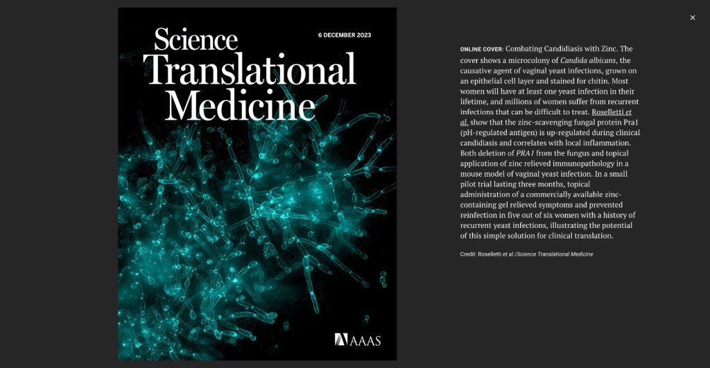 Lo studio mostra come lo zinco possa svolgere un ruolo chiave nel combattere la candidosi, infezione della quale Candida albicans è il microrganismo maggiormente responsabile. I trattamenti antifungini esistenti, infatti, sono sempre meno efficaci anche a causa della resistenza che si sta sviluppando contro di essi. Secondo gli studiosi – il dottor Duncan Wilson e la dottoressa Elena Roselletti, dell’Università di Exeter, la professoressa Eva Pericolini del gruppo di Microbiologia e virologia dell’Università di Modena e Reggio Emilia, la professoressa Manola Comar e il professor Francesco De Seta dell’Università di Trieste e l’Istituto Burlo Garofolo di Trieste – la scoperta suggerisce che il semplice trattamento con zinco potrebbe bloccare la produzione, da parte di Candida albicans, della molecola Pra1 che scatena l’infiammazione cui seguono i sintomi di bruciore e prurito.