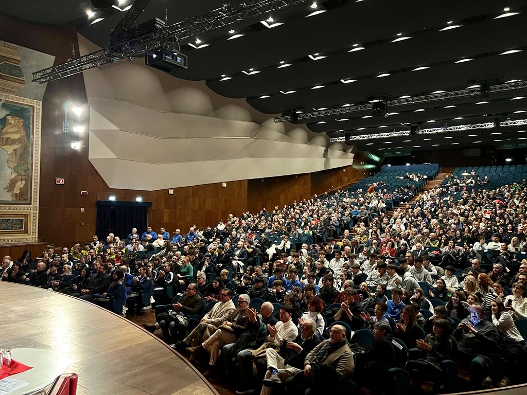 Una serata molto partecipata con il teatro pieno e applausi scroscianti. Oltre 150 i riconoscimenti assegnati come Sportivi Eccellenti 2023 dal Comune. La manifestazione premia i protagonisti dello sport della Città di Assisi. Un’occasione per gratificare l’operato e le qualità degli sportivi e delle associazioni che si sono distinti durante tutta la stagione agonistica.