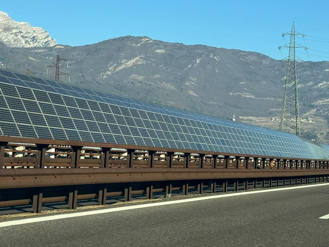 Come specifica Melasecche,  fin dal  2009 l’Autostrada del Brennero «ha realizzato nel Comune di Isera, nei pressi di Rovereto, una barriera antirumore fonoassorbente sulla quale sono stati installati 3.944 moduli fotovoltaici. È lunga 1067 metri e raggiunge i 5,6 metri di altezza, riparando l’abitato dai rumori dell’Autostrada e producendo al tempo stesso energia pulita rinnovabile a servizio del territorio. L’opera garantisce in media una produzione di energia elettrica di circa 750.000 kWh l’anno – rileva -, pari al consumo di oltre 250 famiglie, quasi 1000 abitanti, quando l’intero Comune di Isera ne conta circa 2500».