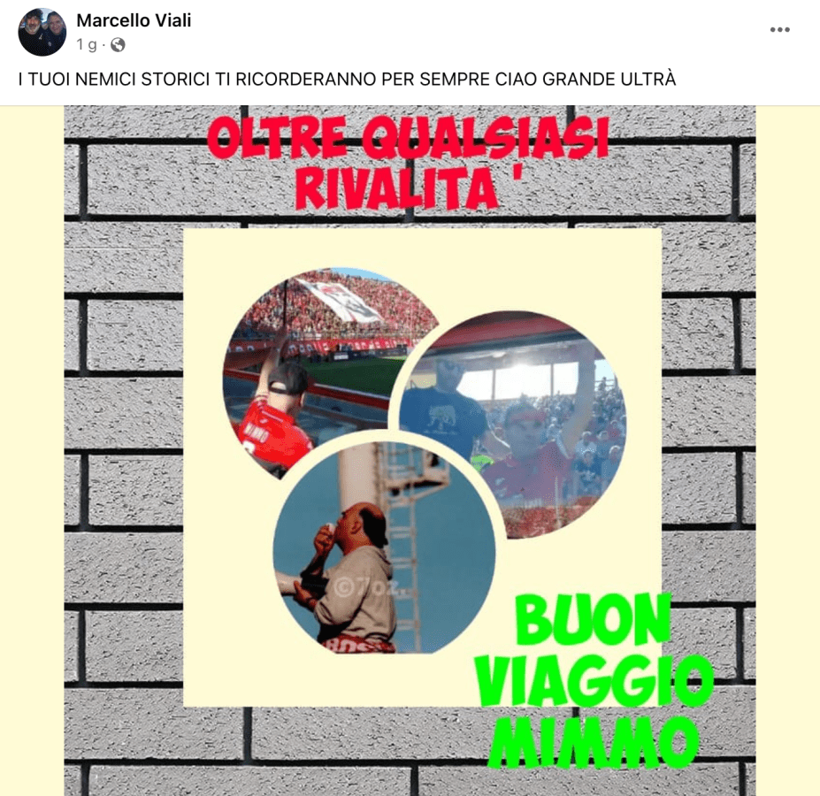 PERUGIA – Nel giorno in cui la Curva Nord renderà l’ultimo saluto a Domenico “Mimmo” Pucciarini, scomparso a Capodanno dopo una lunga malattia, i “nemici storici” omaggiano il capo degli ultras del Grifo.