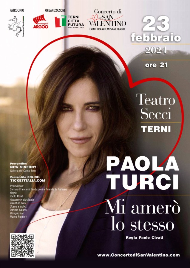 TERNI – Le arti come strumento per celebrare l’amore e chi meglio della cantautrice italiana, protagonista dei miglior teatri d’Italia, può farlo se non Paola Turci, che con la sua voce e il suo talento omaggerà il santo che protegge gli innamorati, il patrono di Terni, San Valentino. Le associazioni Argoo e Terni Città Futura hanno organizzato per il 23 febbraio al teatro Sergio Secci “il concerto di San Valentino”, utilizzando le arti per esprimere la complessità delle emozioni. L’artista porterà il scena lo spettacolo musicale “Mi amerà lo stesso” dove si racconta personalmente, ricordandoci quanto sia fondamentale l’amore per se stessi.