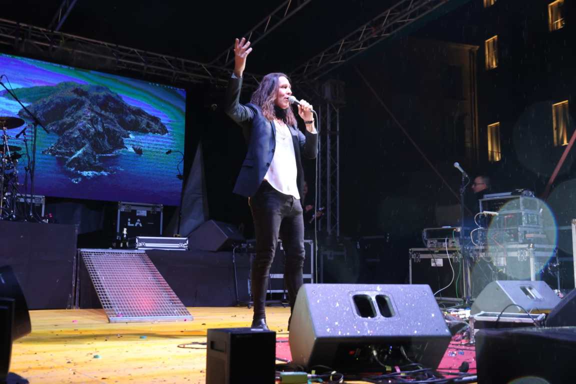 Sul palco anche il vice sindaco Riccardo Corridore e l’assessora alla Cultura Michela Bordoni a scandire il countdown. Poi i fuochi d’artificio che spuntano da palazzo Montani. Poi ancora un po’ di pioggia, ma il pubblico – tantissimi giovani anche con i figli tenuti a cavalcioni sulle spella – apre l’ombrello e resta fino alle 2.