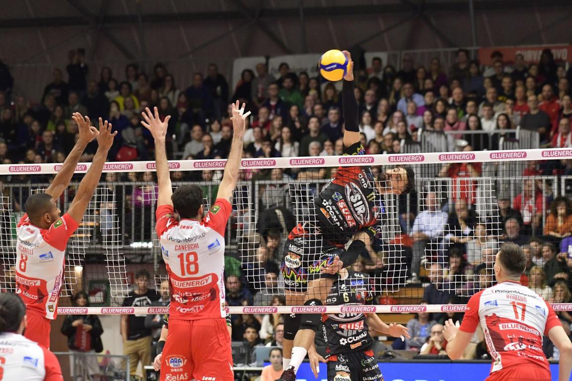 Buono l’approccio alla gara degli uomini di coach Lorenzetti che giocano un primo set di qualità e concretezza con il muro (5 vincenti) sugli scudi. Poi dal secondo set la veemente reazione della squadra di casa che mette una pressione costante dal servizio e trova in Leal un terminale offensivo implacabile (24 punti per il cubano di passaporto brasiliano con il 65% in attacco). I Block Devils cercano di tenere botta, ma non trovano le giuste contromisure e l’attacco conclusivo di Romanò consegna i tre punti alla Gas Sales Bluenergy.