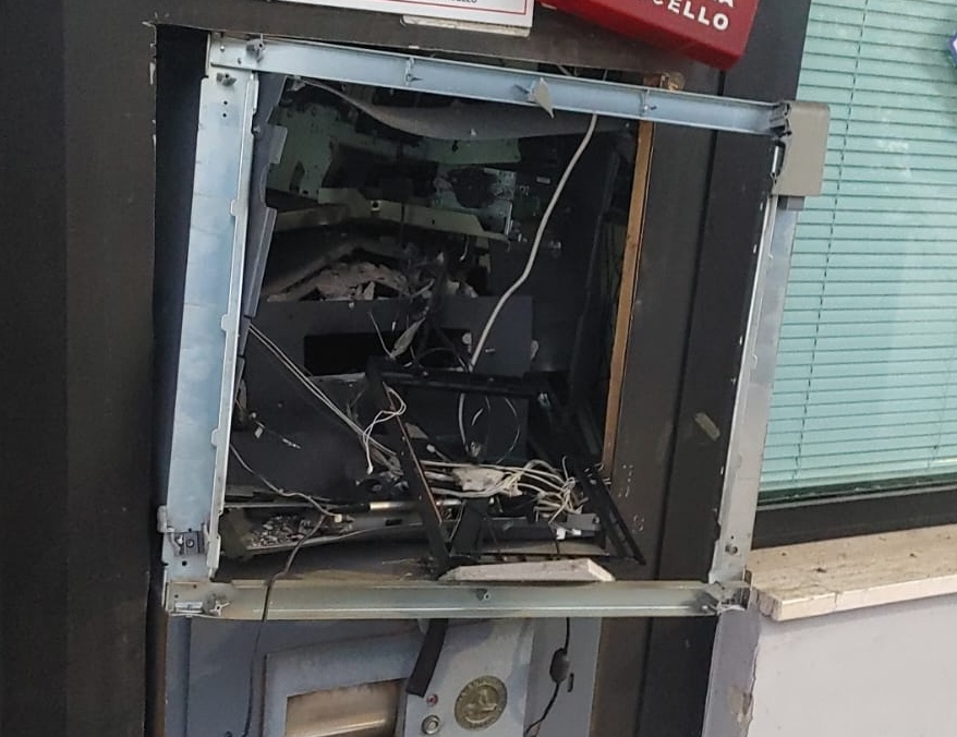 Nella zona intorno all’Atm sono stati rinvenuti i detriti derivanti dall’esplosione del manufatto, posto all’esterno della banca, che ha danneggiato porzioni di facciata dello stabile, a cui vanno aggiunti i danni causati all’interno degli uffici della filiale e per i quali è in corso la quantificazione.