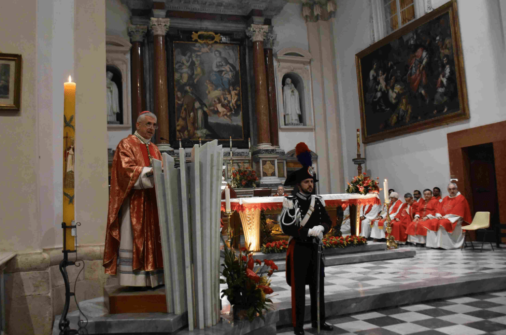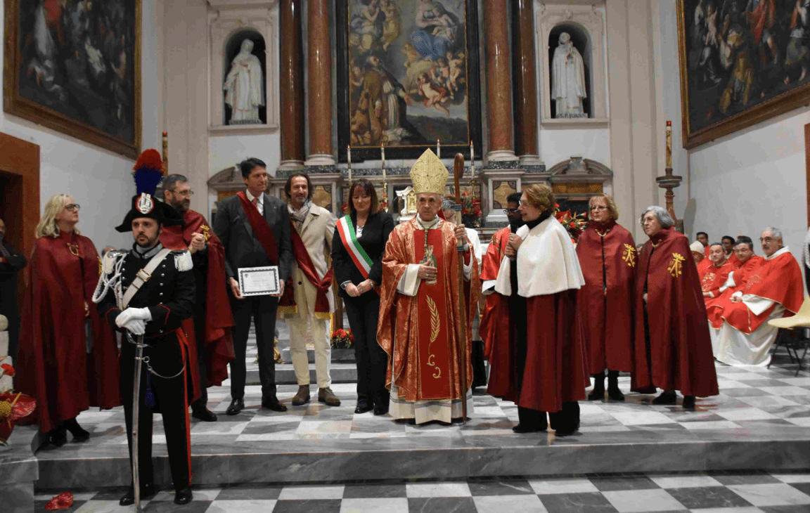 TERNI – «San Valentino ci insegna che solo attraverso la donazione incondizionata della propria vita si può seminare e raccogliere il frutto sano e bello dello stesso amore». Sono le parole pronunciate dal vescovo di Terni – Narni – Amelia, Francesco Antonio Soddu in occasione della celebrazione di San Valentino del 13 febbraio nella basilica. Accanto al vescovo, il vicario generale della diocesi monsignor Salvatore Ferdinandi e il parroco di San Valentino, padre Johnson Perumittath, i sacerdoti della diocesi e i padri carmelitani. Presenti anche la presidente del consiglio comunale di Terni, Sara Francescangeli e le autorità militari. La celebrazione è stata animata dal coro di Giulia della basilica di San Valentino. Inoltre al termine della celebrazione Leonardo Massa, amministratore delegato di Msc Crociere, è stato nominato “Ambasciatore di San Valentino nel mondo”, onorificenza conferita dal Centro Culturale Valentiniano.