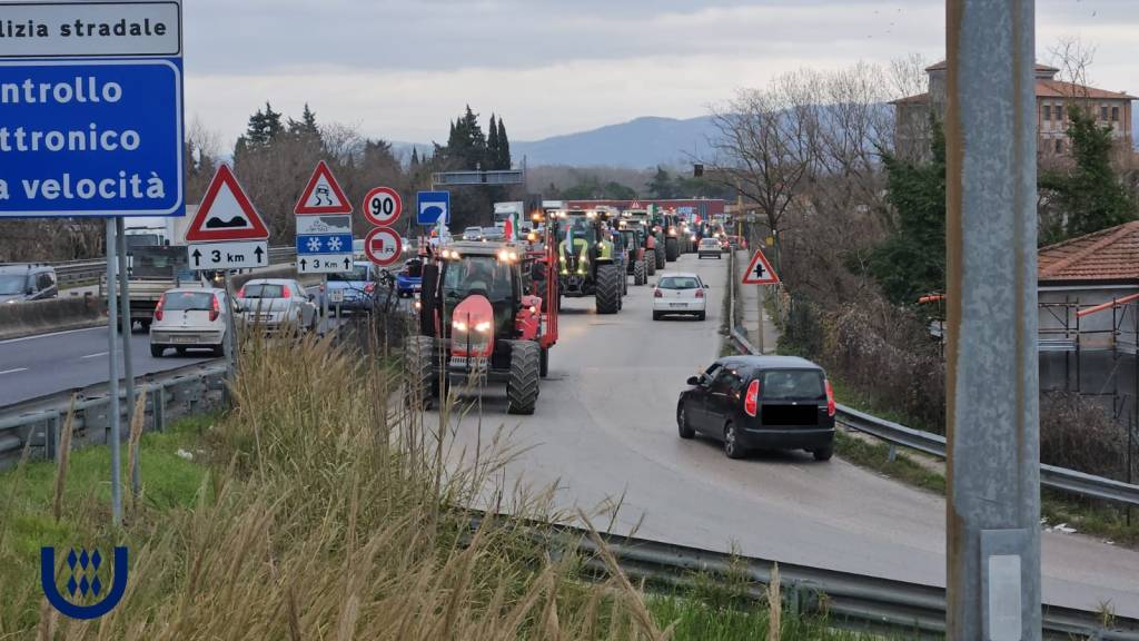 PERUGIA – Dopo il corteo dei giorni scorsi, la protesta sui trattori degli agricoltori contrari alle politiche Ue venerdì 8 febbraio torna a Ponte San Giovanni.