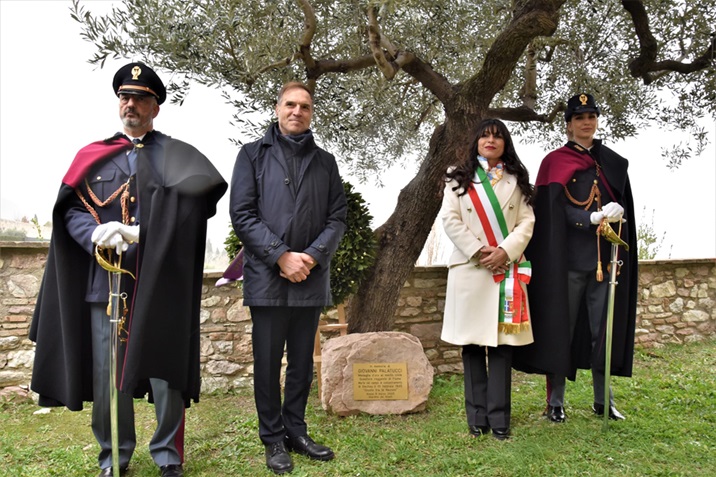 Per l’occasione, che ha visto oltre alla partecipazione del questore di Perugia, anche quella del vescovo di Assisi – Nocera Umbra e Gualdo Tadino monsignor Domenico Sorrentino, del sindaco di Assisi Stefania Proietti e di autorità civili e militari, è stata deposta una corona di alloro ai piedi alla targa commemorativa.