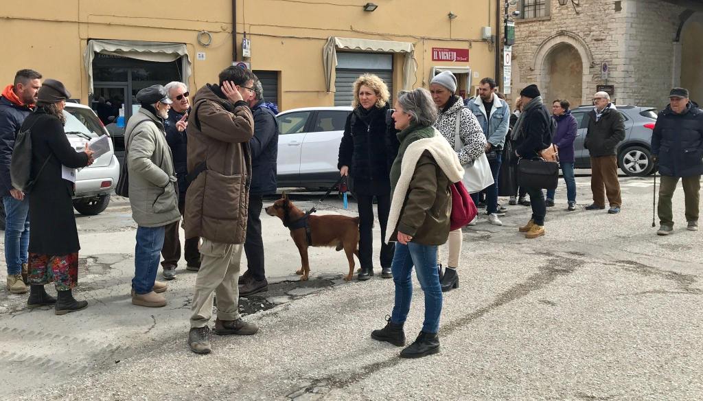 GUBBIO (Perugia) – Tutti uniti per i giardini di piazza 40 Martiri. Con un sit-in che si è svolto nella mattinata di lunedì 26 febbraio, alcuni cittadini e i membri del gruppo Il barone rampante-Salviamo il paesaggio, hanno chiesto in maniera forte, chiara e pacifica di non toccare l’area verde presente al centro della piazza, interessata al momento da profondi lavori di riqualificazione. Stando alle testimonianze dei presenti, non sono mancati i momenti caldi, con i manifestanti e i rappresentanti della ditta che sta eseguendo le operazioni.