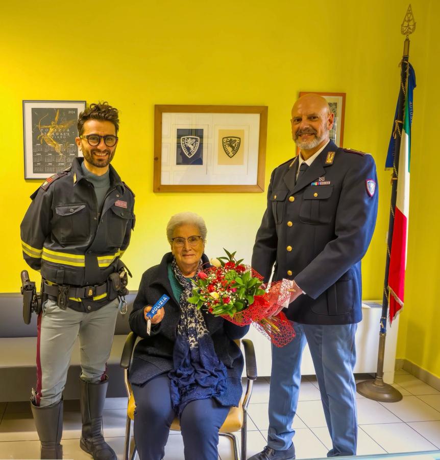 La signora Anna, grata del pensiero dei poliziotti ed orgogliosa del suo contributo, ha voluto ringraziare personalmente i suoi “angeli della strada”.