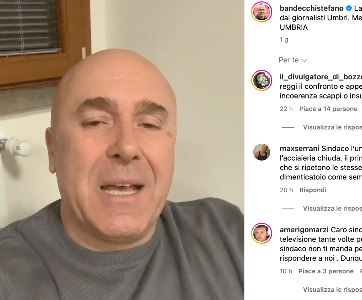 Ps. non prendiamo in considerazione il richiamo fatto a cronisti ed editori umbri affinchè interpellino il sindaco per conoscere il suo verbo. Con tutti i video che mette in circolo ci esporremo a una overdose delle sue verità e soprattutto della sua sintassi. E – si sa – anche l’eccesso nel consumo dei salvifici antibiotici può portare alla nefasta antibiotico-resistenza.