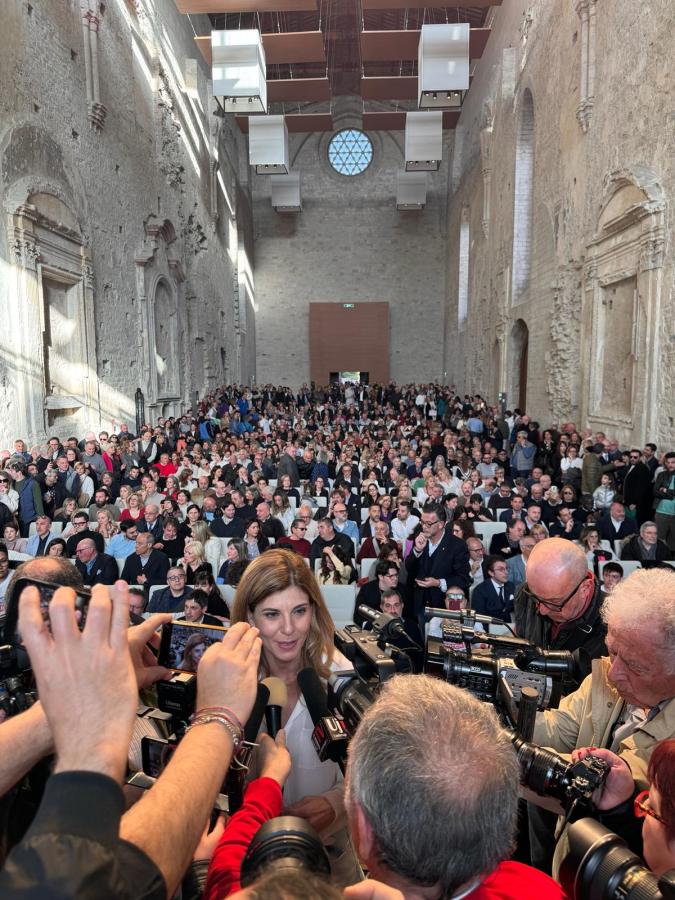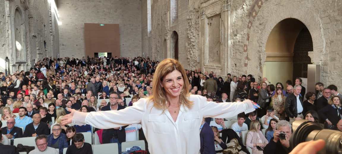 PERUGIA – Road show di Margherita Scoccia, candidata sindaco, a San Francesco al prato. Chi c’era, chi non c’era. Chi c’era: tutto il centrodestra ma proprio tutto. Se mancava qualcuno era perché non ha trovato uno spazio tra i quasi mille che si sono assiepati all’Auditorium, che tante vicende in questi anni ha avuto.