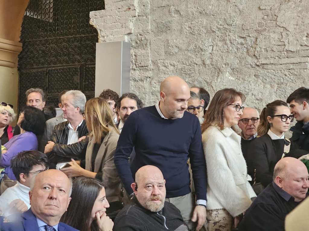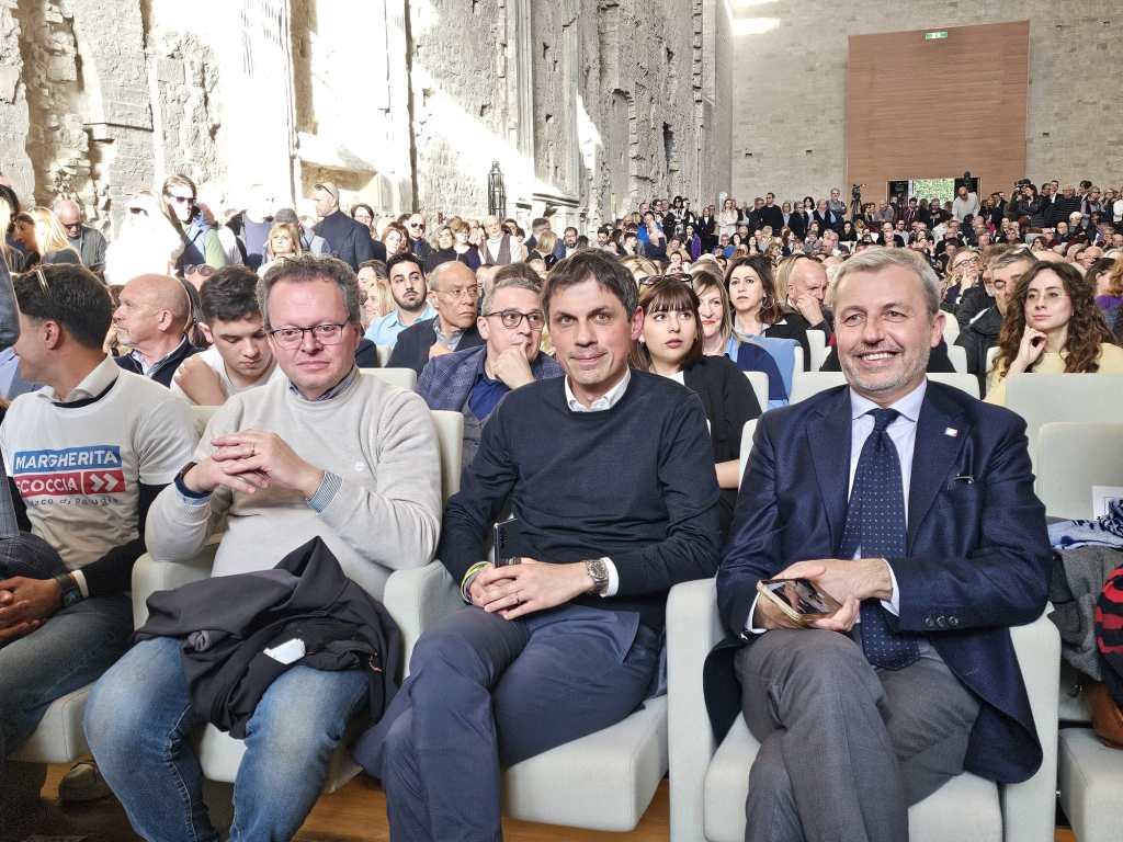 Tutta Fdi di ogni ordine e grado, oltre Zaffini, il presidente e candidato alle Europee, Marco Squarta, e con lui la versione domenicale (maglioncino) Emanuele Prisco. Poi tutti i candidati. Da Giambartolomei a Befani a Renda e nessuno assente.