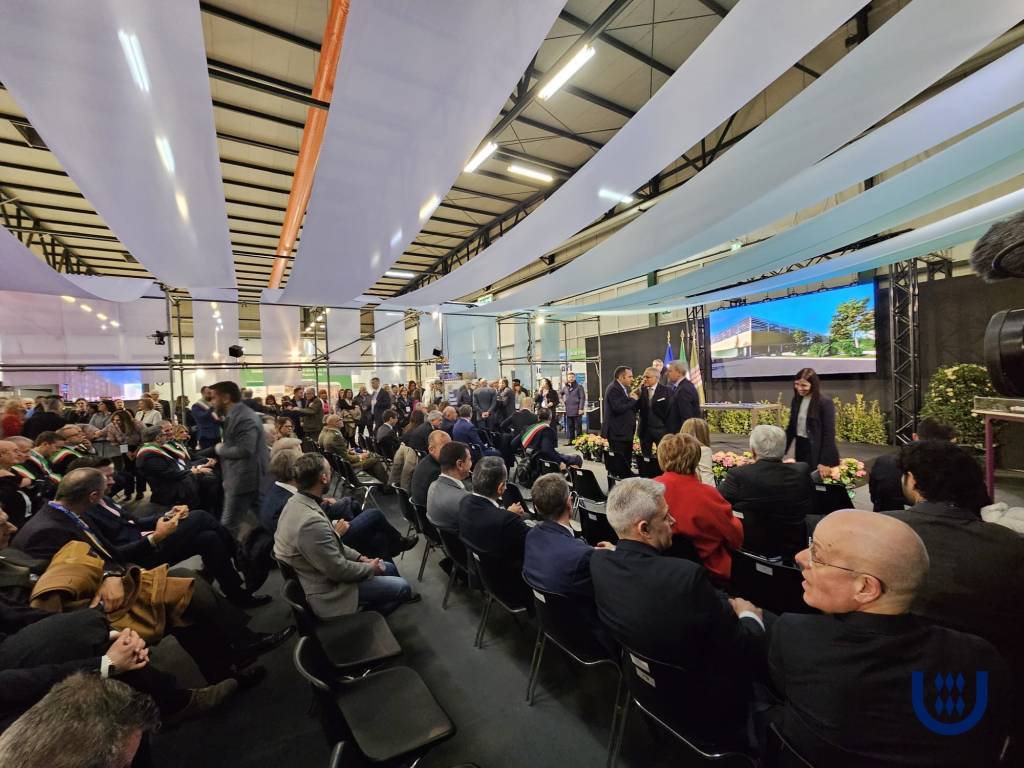 E il padiglione 8 di Umbriafiere l’ha accolta con il pienone delle grandi occasioni: in prima fila la presidente Donatella Tesei, nella giornata dei grandi sorrisi tra le due, mentre la seconda fila è occupata da esponenti della giunta regionale: Paola Agabiti, Enrico Melasecche, Luca Coletto, Michele Fioroni.