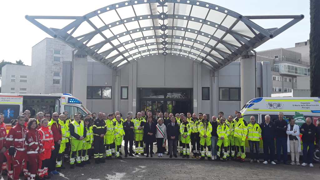 Schierati nel piazzale esterno a rappresentare l’intera catena dell’emergenza sanitaria, oltre alle ambulanze 118 dell’azienda ospedaliera e al personale dell’elisoccorso, anche gli operatori e i mezzi di soccorso dei vigili del fuoco, della polizia di Stato, del Corpo dei carabinieri e della guardia di finanza, della polizia municipale, del Sasu – Soccorso alpino e speleologico Umbria, della Croce rossa, della Ovus pubblica assistenza e della Misericordia.