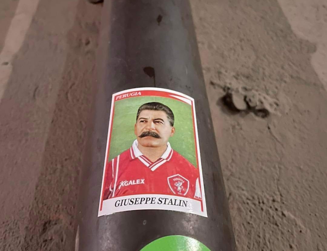 PERUGIA – Dal Cremlino a un immaginario album. Tra i vicoli dell’acropoli, ecco apparire una figura inedita, appositamente creata da un nostalgico dei piani quinquennali e dell’Unione Sovietica. E’ quella di Iosif Stalin, abbigliato con la maglia del Grifo, scovata dalla pagina Facebook “Dario Hubner ti vede”, creata in onore del mitico bomber friulano, in forza al Perugia nel lontano 2004 nella seconda metà dell’ultima, sfortunata stagione dei biancorossi in Serie A. Lo scatto nel giro di poche ore è stato preso letteralmente presa d’assalto da appassionati di stranezze calcistiche e da comunisti ortodossi.
