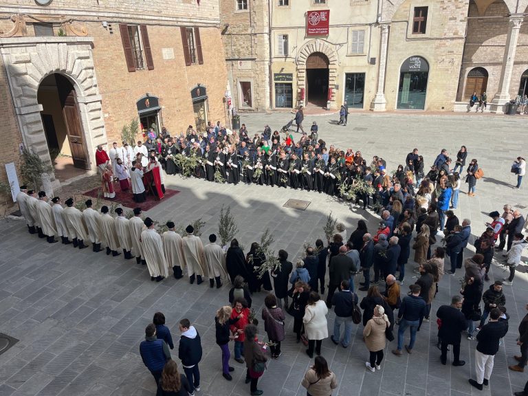 La celebrazione è stata preceduta dalla preghiera con la benedizione dei ramoscelli d’ulivo davanti all’arcivescovado e dalla processione rievocativa l’ingresso di Gesù in Gerusalemme. Tra i numerosi fedeli anche una rappresentanza di studenti e insegnanti di una scuola cattolica del Michigan in visita nel capoluogo umbro per un progetto di gemellaggio, oltre alla presenza di Confcooperative Umbria nel 50° anniversario della nascita le cui realtà agricole sociali hanno donato e distribuito i ramoscelli d’ulivo.